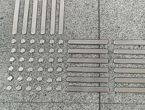 人行道铺设盲人导路设施案例。防滑钉一直是人行道的标配设施,为盲人提供安全引导作用。而应用不锈钢盲道外观更好看...